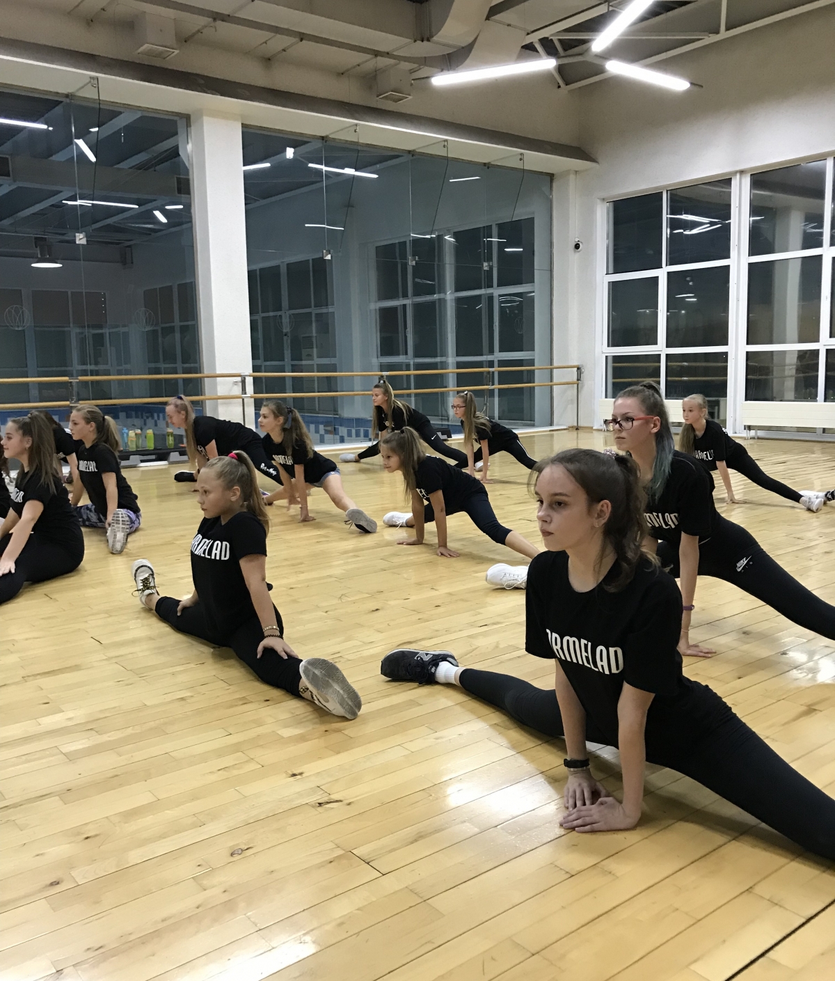 - На занятиях происходит активная работа над гибкостью, точностью и пластикой движений. Основа разминки — упражнения в стиле танца «модерн».