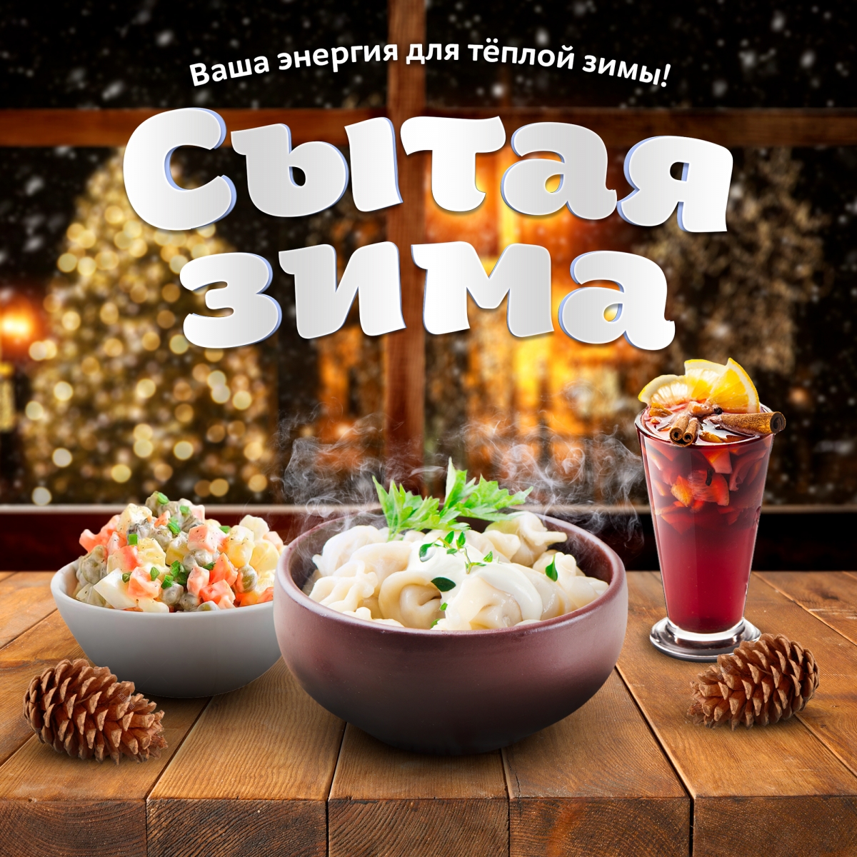 Традиционный зимний салат, полюбившиеся драники и нежная отварная телятина на гречневой каше не оставят Вас равнодушными! А обжигающий ароматный глинтвейн перенесет Вас в волшебную атмосферу новогодних праздников.